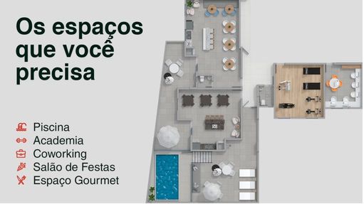 O empreendimento oferece uma estrutura completa de lazer, com ambientes projetados para atender todas as idades: