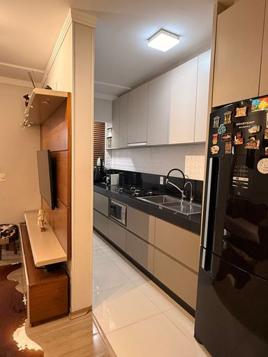 Sala e cozinha integradas, proporcionando melhor aproveitamento do espaço