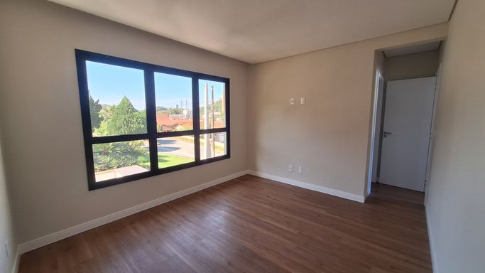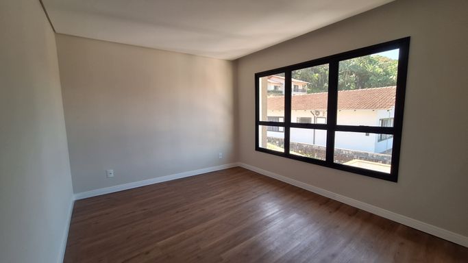 Piso laminado nos quartos, trazendo aconchego e elegância